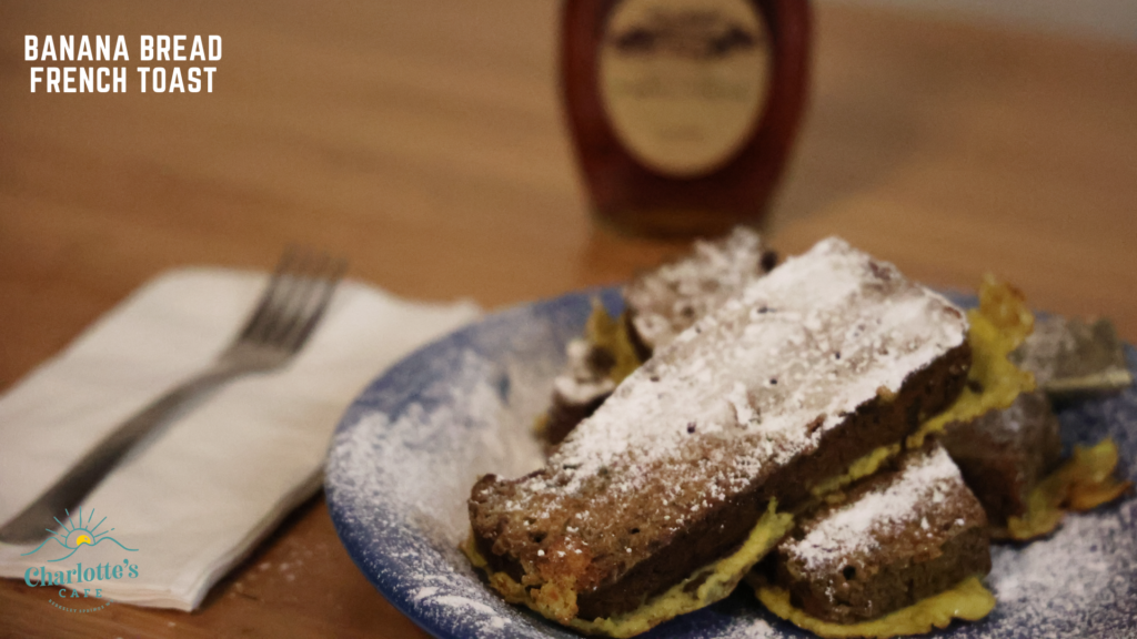 Cinnamon, Brown Sugar Batter, Texas Toast, Topped with Powdered Sugar, Butter & Maple Syrup